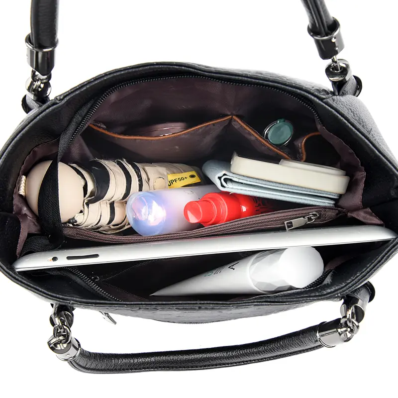 - Stylish crocodile embossed pattern tote bag;